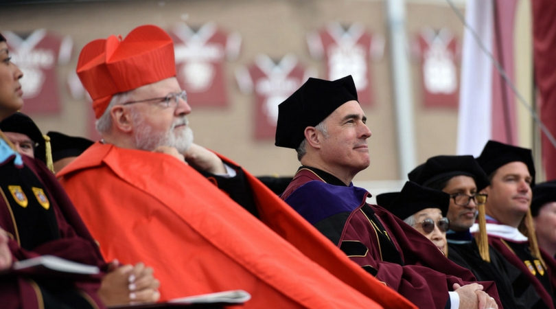 Law had a contentious relationship with Jesuit administered Boston College during his episcopate, warning that BC was in danger of losing its Catholic identity. It was Law who intervened to prevent liberal theologian Richard P. McBrien from teaching there. He also once described the Catholic Theological Society of America as a “theological wasteland.”